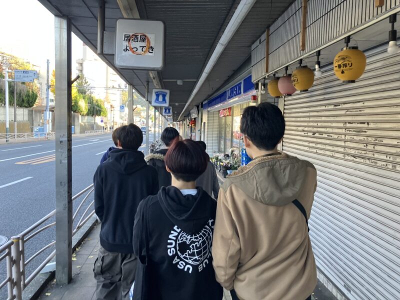 といった声が上がり、交通量、人の流れ、店の種類など、まちを構成するあらゆる要素を観察している様子が印象的でした。都市計画・建築・デザインの視点を持つ学生にとって、フィールドワークとして非常に濃い時間になりました。