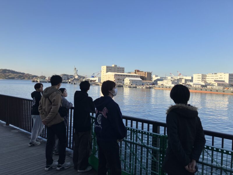 最後に訪れたのは、横須賀の観光地である海沿いのヴェルニー公園。米軍基地が見える横須賀らしい風景と、多くの人で賑わう公園の活気に、学生は驚きの表情を浮かべていました。