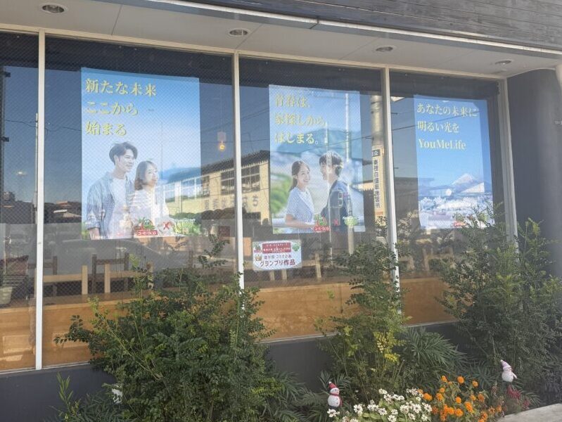 12月2日、最終選考で選ばれたキャッチコピー3点が、you..and,me cafe の大きな窓面にA0サイズのポスターとして掲示されました。