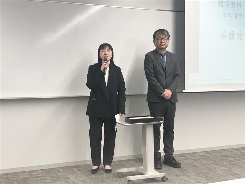 そして、今回のテーマに取り組んだ中で最も高く評価されたのは、土木学科に所属する1年生チームです。最後までテーマ設定に悩み、打ち合わせの中では多くの指摘を受けてきたチームでしたが、最終報告会では一つひとつ修正し、自分たちのアイデアをしっかりと形にまとめ上げ、見事1位に輝きました。